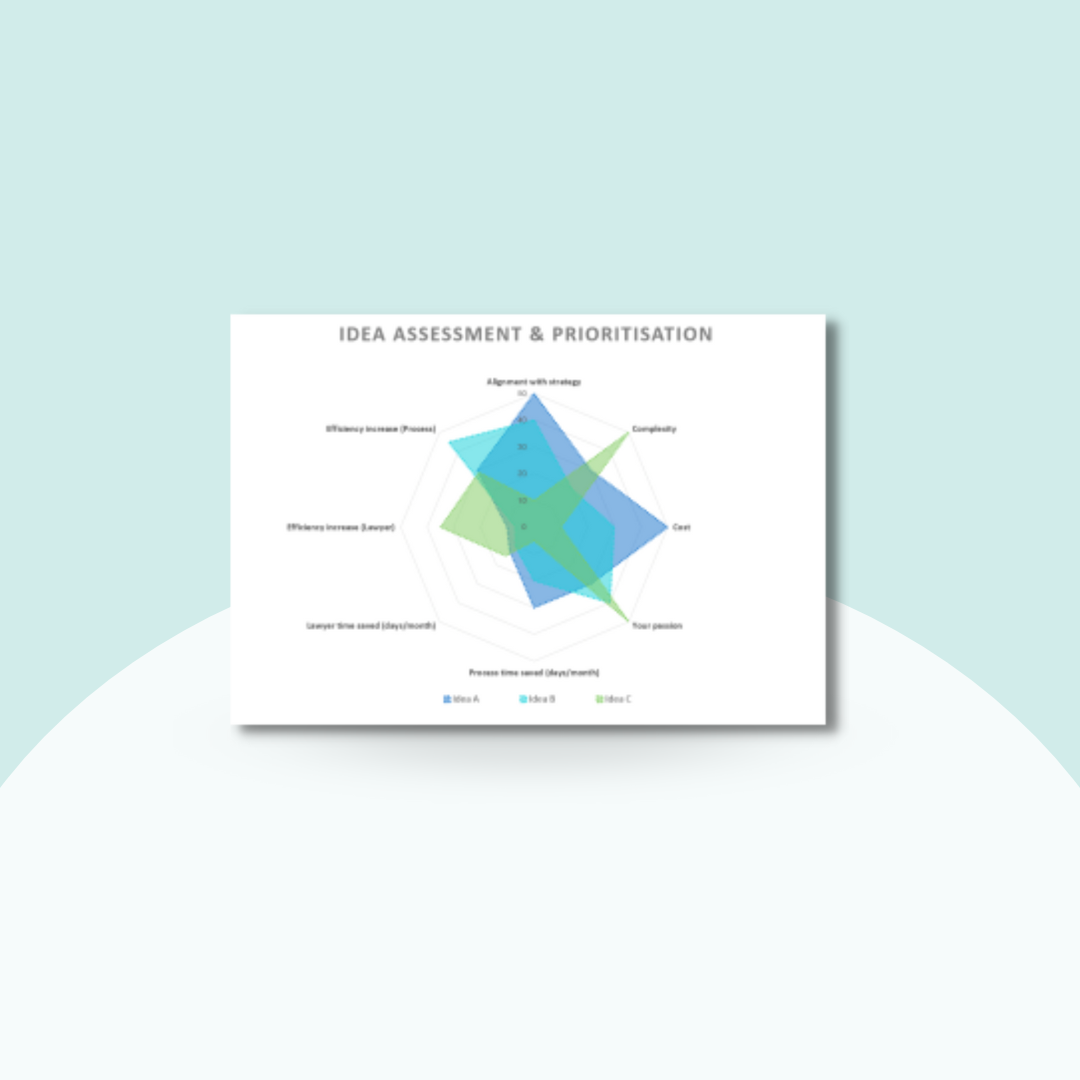 Legal Metrics - Spider Chart to Compare Innovation Ideas & Options (Worksheet Template)